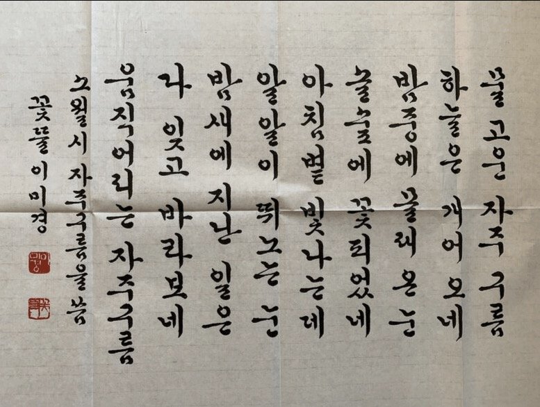Unlike Japanese or Chinese, Korean uses spaces between words. Historically, characters were written in vertical columns from right to left, but today the writing follows a horizontal, left-to-right structure, except in traditional calligraphy.