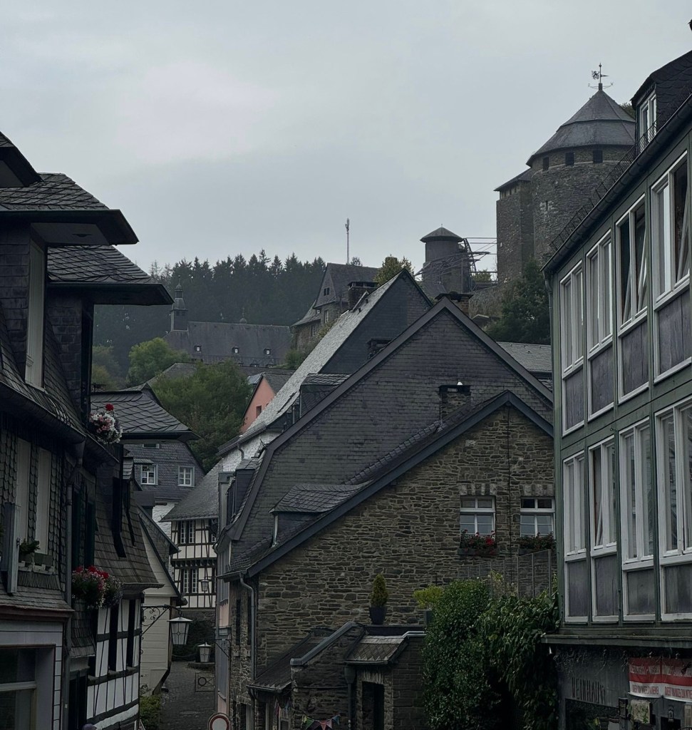 Monschau had been on our travel list for a year before my husband and I finally embarked on our journey this summer. The town greeted us with 10 degrees Celsius and sleet in mid-August, but otherwise, it was a fantastic experience—and surely not the last one in this surreal corner of Germany. Just imagine spending your Christmas vacation here!